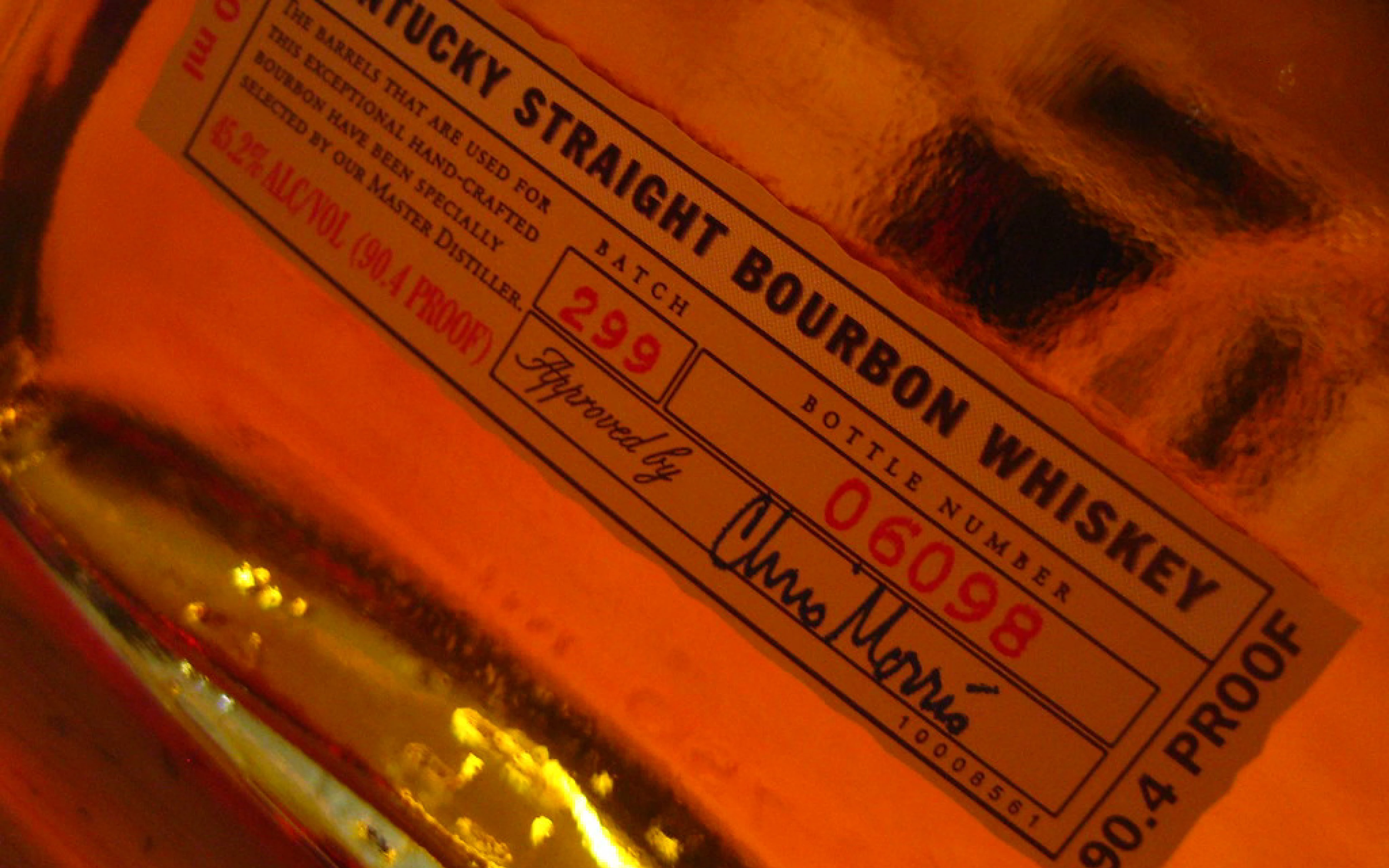 Bottling minimum: 80 proof (40% ABV). The finished bourbon must be bottled at no less than 80 proof. Nothing may be added beyond water to reach the desired proof. No coloring, no flavoring, no sweeteners.